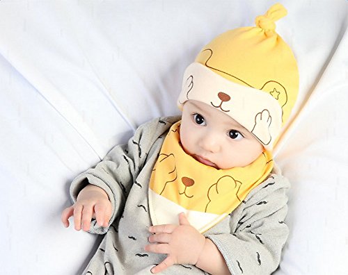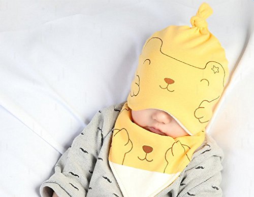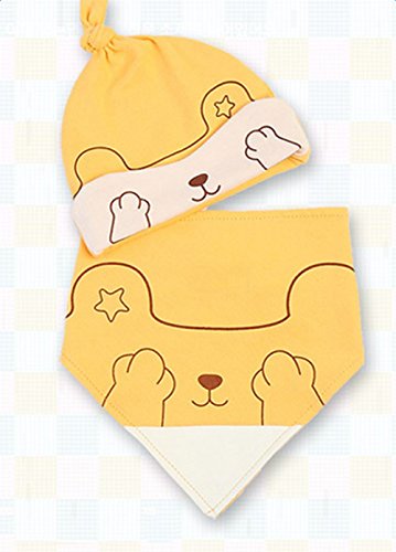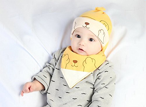 Gespout 帽子 ベビー 赤ちゃん コットン キツネ柄 春 夏 秋 0-12ケ月 可愛い 子供 キッズ 睡眠用 キャップ 誕生日 プレゼント 人気 2点セット(帽子 生唾襟巻き) 黄色