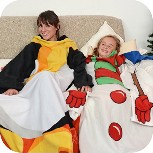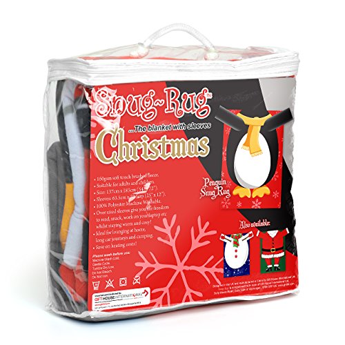 Get into the spirit of Christmas this year with the Snug Rug Penguin sleeved blanket! Perfect for anyone who wishes to transform themselves into a cute festive penguin! Keep snug and enjoy Christmas while relaxing in true style.The over-sized sleeves you the freedom to open presents, snack and drink whilst keeping cosy.Cuddle up and stay warm on the cold winter nights, a penguin does! Warm, easy & lightweight, this item is great fun and makes the ideal present for the festive season! Anti-pilling both sides, soft touch brushed fleece (160gsm).Packed in a zipped clear PVC bag.Measures 137cm x 183cm.