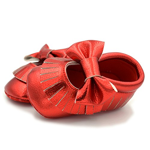 Gift House(ギフトハウス)赤ちゃんシューズ 子供靴 ベビースニーカー ファーストシューズ ソフトソール 耐磨 滑り止め歩行練習 履き心地いい 蝶結び タッセル 可愛い 室内履き ルームシューズ 履き心地いい 春 秋用 (12, レッド)