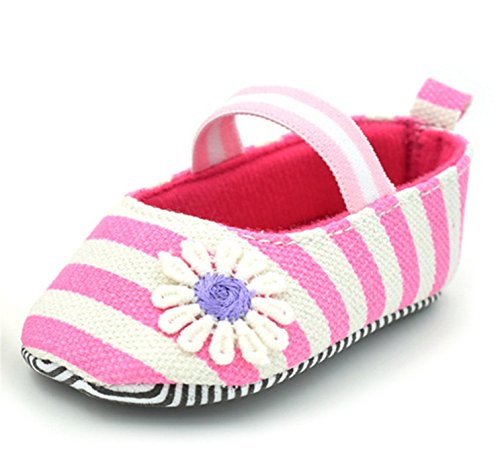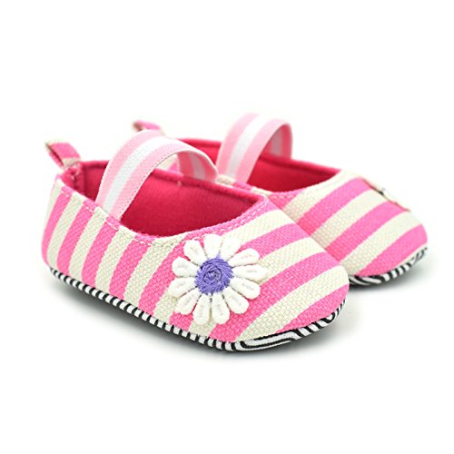Gift House(ギフトハウス)赤ちゃんシューズ 子供靴 ベビースニーカー ファーストシューズ ソフトソール 耐磨 滑り止め歩行練習 履き心地いい 綿布デイジーストライプ 可愛い 室内履き ルームシューズ 春 秋用 (13, ピンク)