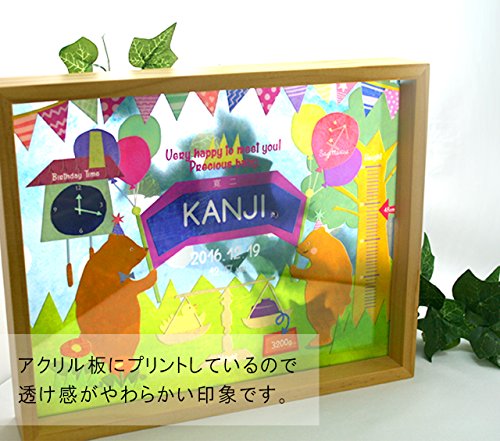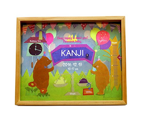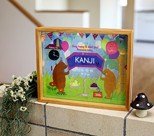 出産祝い,ベビー,ギフト,出産記念,名入れイラスト画,バースメモリアルボード|くま木製フレーム