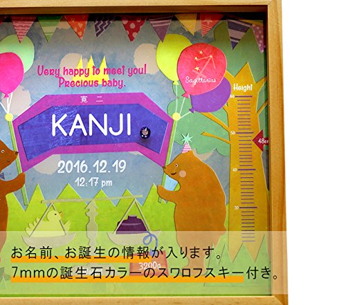 ◆一見するとメモリアルフレームに見えない、可愛らしく、オシャレなイラストをプロのイラストレーターが書き下ろし。◆1枚のイラストの中にさりげなく誕生日時や星座、出生時の身長、体重が収まっています。◆全ての作品はアクリル板にプリントしており、程よい透け感があります。◆さらに7mm以上のスワロフスキーのクリスタル誕生石をあしらい、より高級感を演出。家族にとって大切な宝物である赤ちゃんのお祝いにピッタリです。