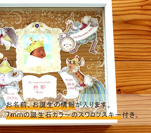 ◆一見するとメモリアルフレームに見えない、可愛らしく、オシャレなイラストをプロのイラストレーターが書き下ろし。◆1枚のイラストの中にさりげなく誕生日時や星座、出生時の身長、体重が収まっています。◆全ての作品はアクリル板にプリントしており、程よい透け感があります。◆さらに7mm以上のスワロフスキーのクリスタル誕生石をあしらい、より高級感を演出。家族にとって大切な宝物である赤ちゃんのお祝いにピッタリです。