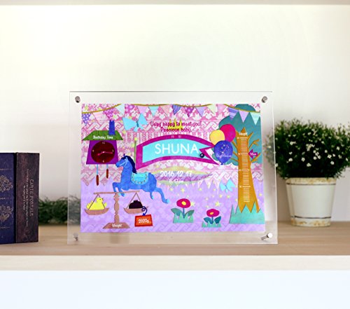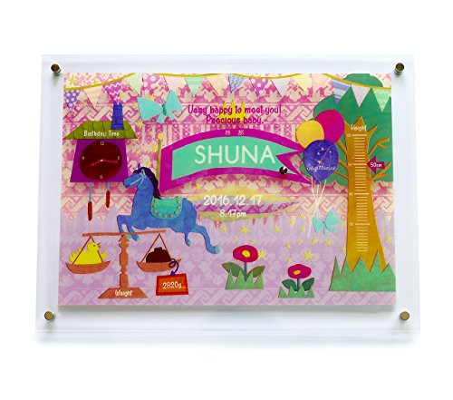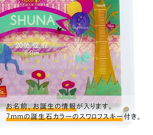 ◆一見するとメモリアルフレームに見えない、可愛らしく、オシャレなイラストをプロのイラストレーターが書き下ろし。◆1枚のイラストの中にさりげなく誕生日時や星座、出生時の身長、体重が収まっています。◆全ての作品はアクリル板にプリントしており、程よい透け感があります。◆さらに7mm以上のスワロフスキーのクリスタル誕生石をあしらい、より高級感を演出。家族にとって大切な宝物である赤ちゃんのお祝いにピッタリです。