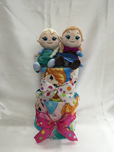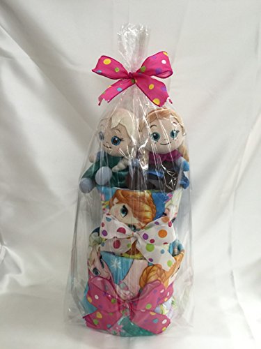 今人気の、アナと雪の女王の新作おむつケーキです。 かわいいアナとエルサの人形、赤ちゃんがよく使うフェイスタオルとウォッシュタオル入りです。 おむつはMサイズを起用しているので、しばらく飾って頂けます。 出産お祝はもちろん、プレゼントにも。
