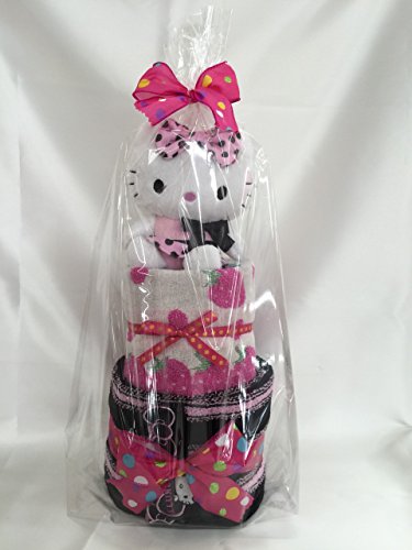 キティの人形付きおむつケーキ。 赤ちゃんがよく使うフェイスタオル、ウオッシュタオルのおむつケーキです。 おむつは産科でよく使われているパンパース。テープのMサイズだから、しばらく飾って頂けます。 出産お祝はもちろん、お誕生日プレゼントにも。
