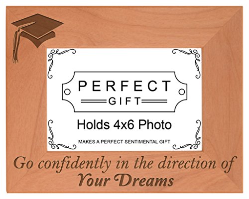Go Confidentlyで方向の夢天然木製刻印フォト写真フレーム 4x6 Horizontal