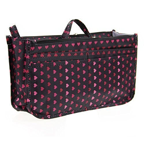 【バッグインバッグ】 インナーバッグ 収納バッグ デザイン シンプル ブラック&ピンクハート柄