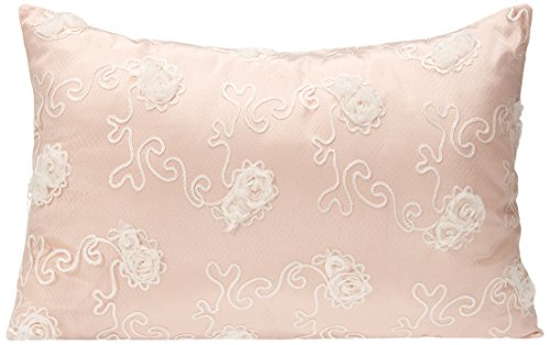 A ultra fine sheer netting embellished with dimensional ivory chiffon cut flowers overlays a pink silk-like fabric;Clean lines showcase elegant floral netting;Overall size 28 wide x 18 high, split back for easy cleaning