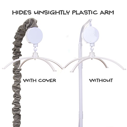 Hide unsightly plastic mobile arm with slate grey sleeve^Add softness and color to the crib^42 long, coordinating cover slides easily over plastic arm