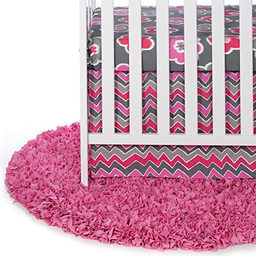 2 Piece Baby Crib Bedding Starter Set includes crib skirt and floral print fitted sheet;Crib skirt has a 16 inch drop;Fitted sheet is designed to fit a standard size 28 inch x 52 inch crib mattress; it has elastic all around for a snug fit;Made of 100% cotton prints;Machine washable