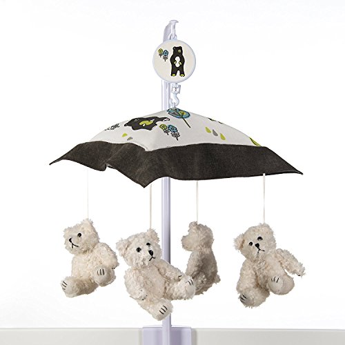 Your little?adventurer?with love this woodland themed collection. Whimsical?honey bears in shades of mocha, slate, azure and celery roam the forest.?Bumper, quilt and rail guards are trimmed with silver corded piping.? Quilt back is super soft cream fabric.? Bumper ties are celery green grosgrain ribbon.??Wall decor includes a variety of art including fabric covered canvases, framed prints with glass, and large wall decals.? Coordinating essentials range from matching hamper and waste can to Ubbi diaper pail covers, table lamp, and hanging drum shades.?Decorating the nursery has never been easier or more fun with such a ?wide range of coordinates to choose from.? All?handcrafted in the USA for quality, comfort and design you can count on.