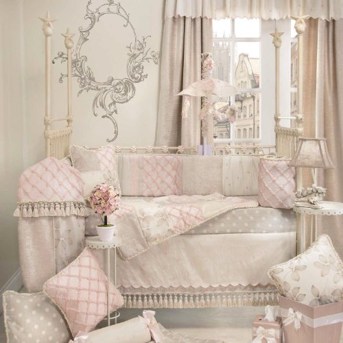 Includes: Quilt, Grey Dot Crib Sheet, Crib Skirt, and Crib Bumper;Shades of Cream, Taupe, and Petal Pink;Dot Sheet is 100% Cotton