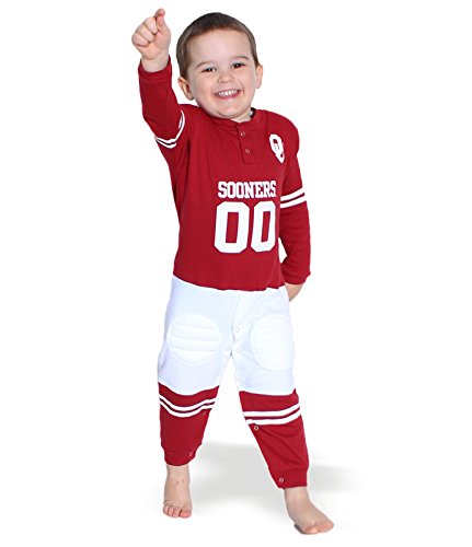 あなたの小さなファンは、そのチームの精神を示す、誇りでこの素晴らしいfootysuitをどうぞ。完璧なパジャマのように、ゲームギア、またはplaywear。実際のサッカー統一された外観になっています。その幼児サイズは、完全footed.でを股にスナップします。肩と膝での幼児サイズでは袖口を取得し足首とパディングの実物のように見える100 %コットン製ソフトな感触。洗濯機洗い可。は、Oklahoma SoonersとNCAA公式ライセンス。最高品質のコットン製の構造、グリッターギアから構成されます。