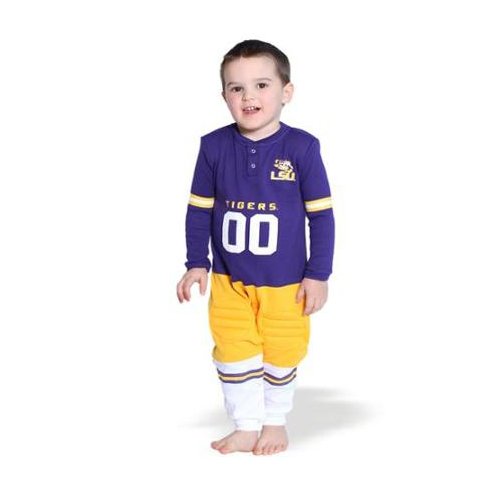 あなたの小さなファンは、そのチームの精神を示す、誇りでこの素晴らしいfootysuitをどうぞ。完璧なパジャマのように、ゲームギア、またはplaywear。実際のサッカー統一された外観になっています。その幼児サイズは、完全footed.でを股にスナップします。肩と膝での幼児サイズでは袖口を取得し足首とパディングの実物のように見える100 %コットン製ソフトな感触。洗濯機洗い可。は、LSU TigersとNCAA公式ライセンス。最高品質のコットン製の構造、グリッターギアから構成されます。