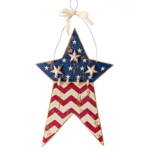 Glitzhome素朴な木製Patriotic Star壁装飾