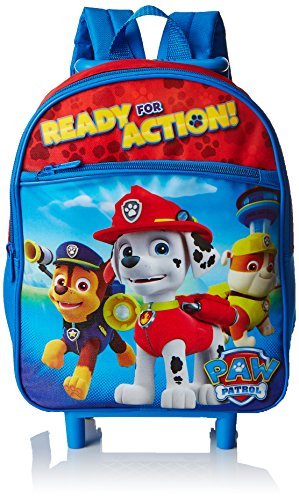 Paw patrol 12 inch rolling backpack features the cute popular characters from the hit show paw patrol on nickelodeon. Kids will love rolling this around.