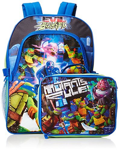 Full size 16 inch backpack features popular ninja turtles characters. Has one main compartment, one front pocket, and two side mesh pockets for extra storage. Lunch kit is insulated to keep food beverages warm or cold and detaches from the bag. Ninja turtles fans will love this bag.