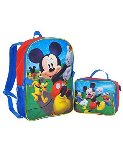 Full size backpack featuring mickey, Pluto, and daffy. Insulated lunch kit detaches from the bag.