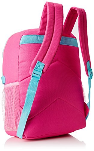 Backpack features Minnie mouse in sweet pink background. Lunch kit detaches and is insulated to keep food and beverages cold or warm. Has main compartment, front pocket, and two side mesh pockets for plenty of storage.