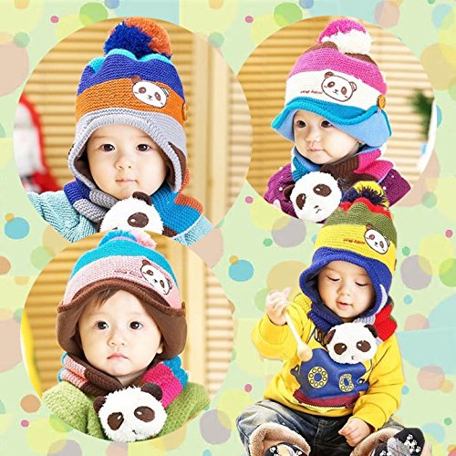 【Global Trade Japan】 パンダ ボンボン 帽子 & マフラー & 靴下 3点セット (ローズ)