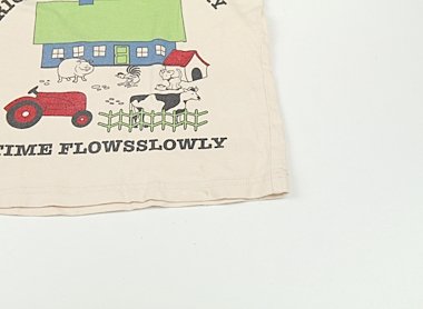 - 実際のサイズ表記はMです。裾に茶色いシミがあります。茶色の襟ぐり部分が色褪せ毛羽立ちしています。外遊びや洗い替え用にいかがでしょうか?