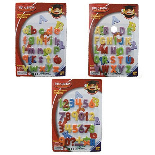 Any metallic surface can be your child's letter and number learning spot! This set contains 3 packs: 26 capital letters, 26 lower case letters, and the numbers 1-10 along with math symbols. Bright colors and soft edges promote active, tactile learning.