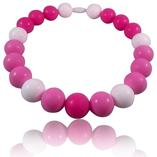 Tickled Pink Baby Teething Necklace-Made With 100% Food Grade Silicone Teething Beads. Chewable Jewelry For Teething Babies & Children. by Mommy's Touch