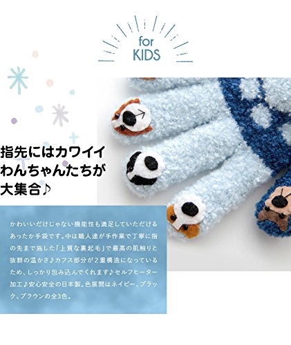 かわいいわんちゃん達が指先に♪カフス部分は折り返しなので、しっかり包み込んで温かい♪ストレッチ機能もばっちりなのでフィット感も抜群です♪色展開はブラック、ブラウン、ネイビーの全3色。