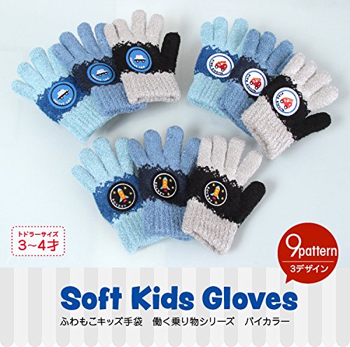 ふわもこキッズ手袋 働く乗り物シリーズ パトカー バイカラー ブルー