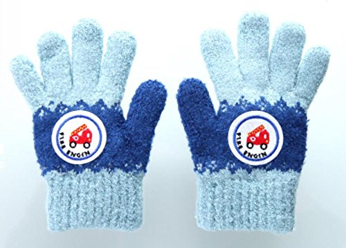 ふわもこキッズ手袋 働く乗り物シリーズ 消防車 バイカラー ブルー