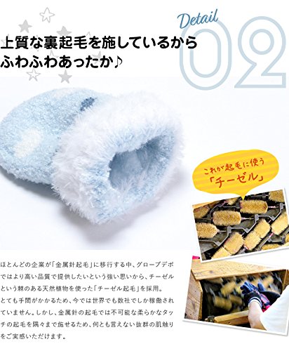 かわいいだけじゃない機能性も満足していただけるあったか手袋です。ストレッチ性に優れた糸で編んでいるので、抜群のフィット感と温かさ♪カフス部分が2重構造になっているため、しっかり包み込んで冷たい空気が入り込みにくい構造となっています。セルフヒーター加工♪安心安全の日本製。カラーはピンク、サックスブルーからお選びいただけます♪