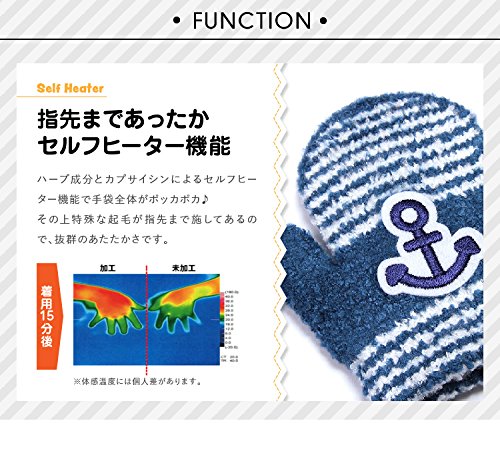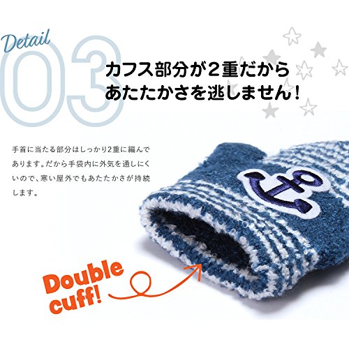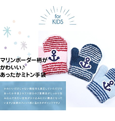 ふわふわモコモコのあったかミトン手袋♪マリンボーダー柄♪