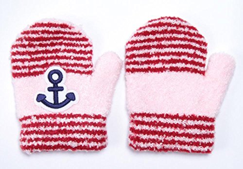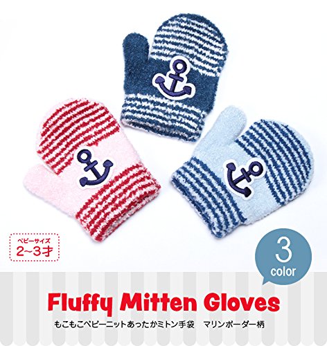 もこもこベビーニットあったかミトン手袋 マリンボーダー柄 ピンク