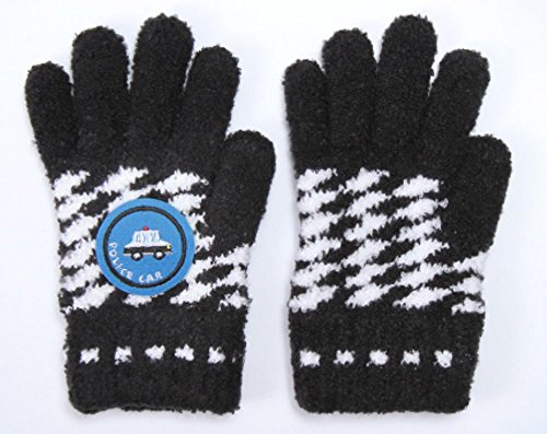 ふわもこキッズ手袋 働く乗り物シリーズ スラントチェック(リブ編み) パトカー ブラック