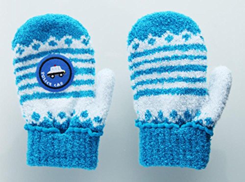 キッズふわもこミトン手袋 働く乗り物シリーズ パトカー ボーダー柄 ブルー