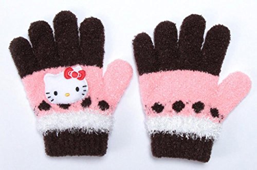 【Hello Kitty】キッズ キャラクター手袋 ニット5本指タイプ ブラウン