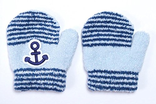 もこもこベビーニットあったかミトン手袋 マリンボーダー柄 サックスブルー