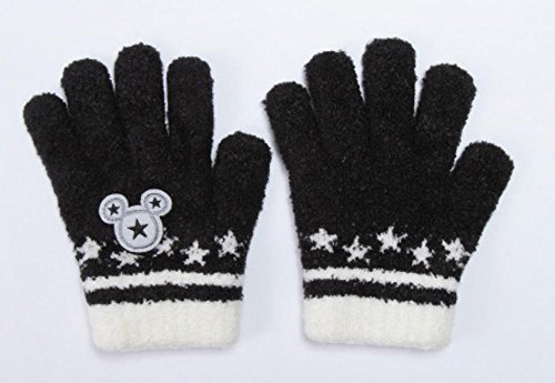 【Mickey Mouse】キッズ キャラクター手袋 ニット5本指タイプ ブラック