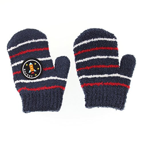 ふわもこキッズミトン手袋 働く乗り物シリーズ ボーダー柄 ロケット ネイビー