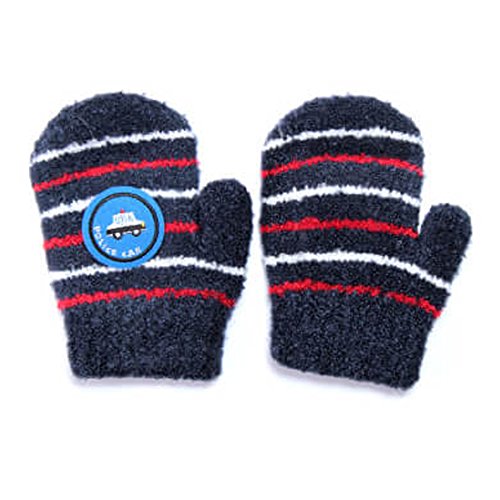 ふわもこキッズミトン手袋 働く乗り物シリーズ ボーダー柄 パトカー ネイビー