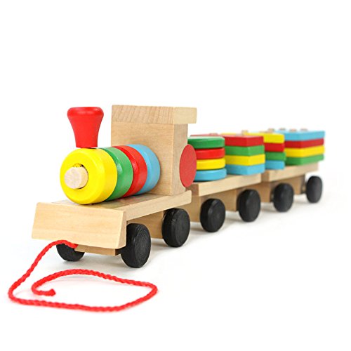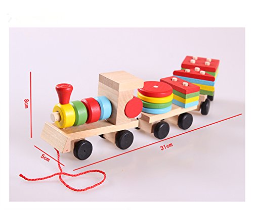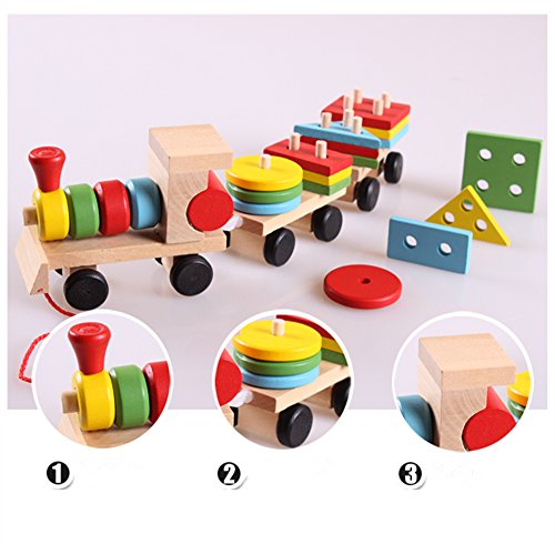 Gmasking 木製 おままごとセット 機関車 電車 積み木 列車 幼児教育 創意玩具 子供おもちゃ 知育玩具 木製のおもちゃ 幾何学ブロック アセンブリの 建築用ブロック (積み木 列車)