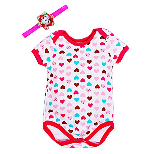 Gmasking 2016年新作 半袖ボディースーツ 子供ロンパース キッズロンパース ヘアバンド付き 2点セット (M(3-6Months), ハート)