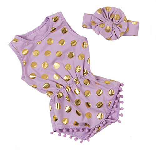 Gmasking 新作 袖なしのボディースーツ 赤ちゃんロンパース ベビー 新生児ロンパース 女の子 カバーオール ヘアバンド付き 0-2歳設定 2点セット (S, パープル)
