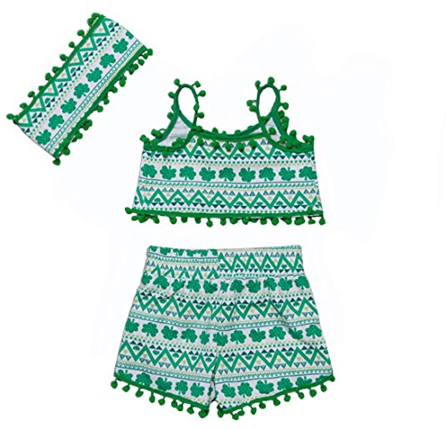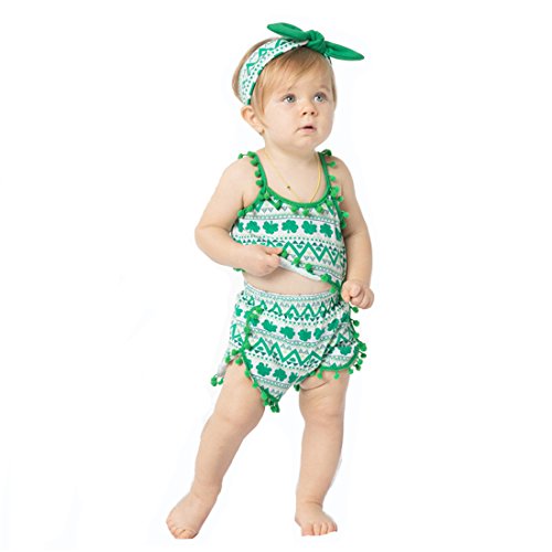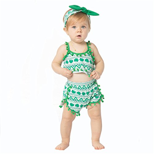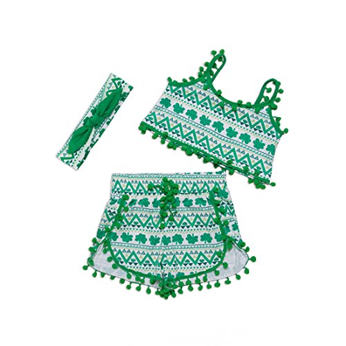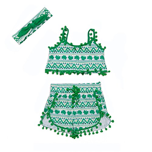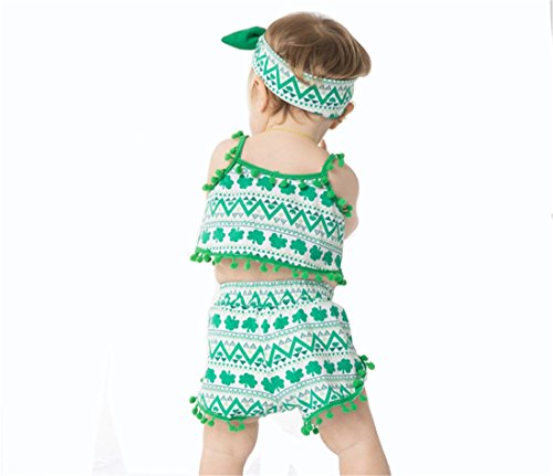 Gmasking 子供服 女の子 シャツ プリンティング スリング服 ベビー服 パンツ リボン飾り 上下セット 1歳 2歳 3歳 (M, 夏の緑)