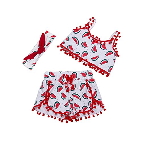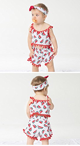 Gmasking 子供服 女の子 シャツ プリンティング スリング服 ベビー服 パンツ リボン飾り 上下セット 1歳 2歳 3歳 (L, 夏のすいか)