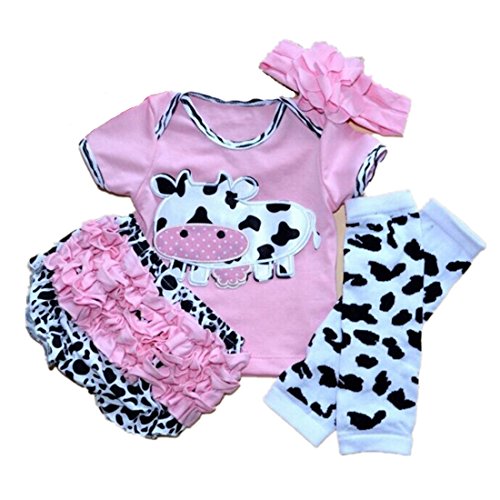Gmasking ベビー衣装 ホルスタインデザイン ベビー ヘアバンド付き 4点セット (M(3-6Months))