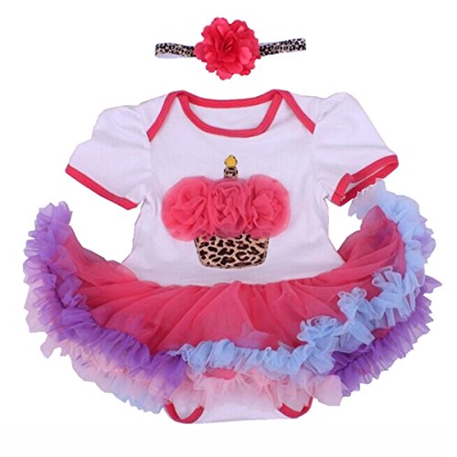 Gmasking 子供ドレス 女の子ワンピース リボン飾り付き 誕生日ケーキデザイン 一歳プレゼント (M(3-6Months), 多色ケーキ)