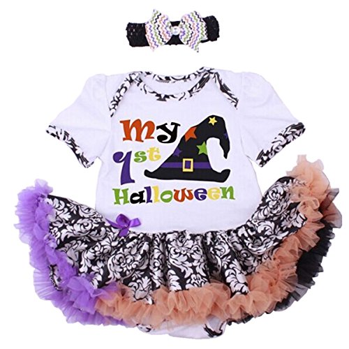 Gmasking 子供ドレス 女の子ワンピース リボン飾り付き My 1st Halloweenデザイン 一歳プレゼント ハロウィン (M(3-6Months), セット4)