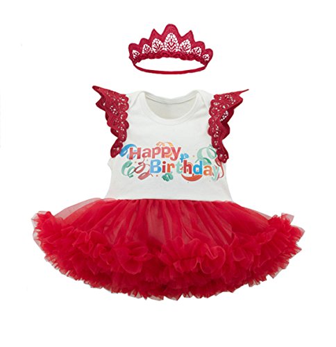 Gmasking 新作 子供ドレス 女の子ワンピース ロンパース 天使の翼 袖 王冠リボン飾り 誕生日お祝い 誕生日プレゼント 0歳 1歳 2歳 (L, レッド2点セット)